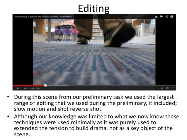 I feel that given the strengths of our preliminary task, we had little to do in our main task other than consolidate our newly acquired skill set and to put these into a solid form of practice for the main task. I feel that given our improvement in camera angle choices our task really benefitted in better experience of choosing the correct camera angles and a wider range of camera angles that had been demonstrated in the preliminary task. During the main task, the group was able to make full effective use of the 180 degree rule, match on action shot and the Shot reverse shot, some of which complete mastery of certain areas was lacking in our preliminary task.